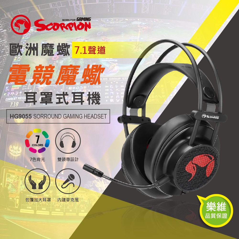 【MARVO魔蠍】 HG9055 RGB耳罩式7.1聲道耳機USB HG9055 樂維科技原廠公司貨 現貨 廠商直送