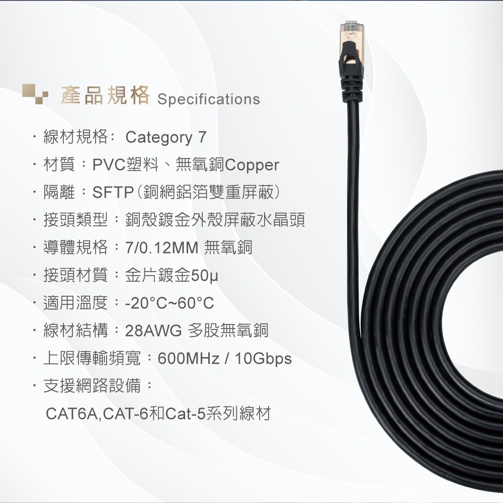 超高頻寬傳輸網路線 極速 Cat7 鍍金接頭SFTP雙屏蔽網路線(3M)-REC8 蝦皮直送 現貨