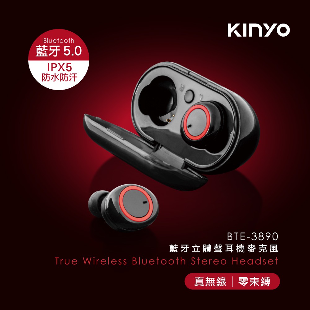 〖 KINYO 〗藍牙立體聲耳機麥克風(BTE-3890) 5.0 TWS 真無線 防水防汗 10M距離 廠商直送