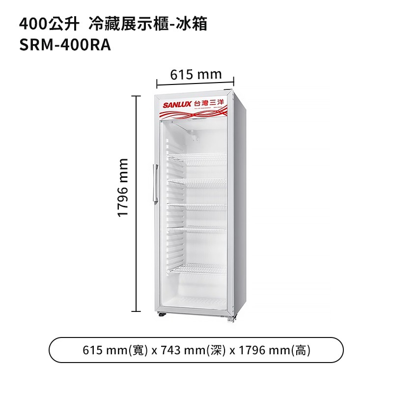 SANLUX台灣三洋【SRM-400RA】400公升冷藏展示櫃-冰箱(標準安裝) 大型配送