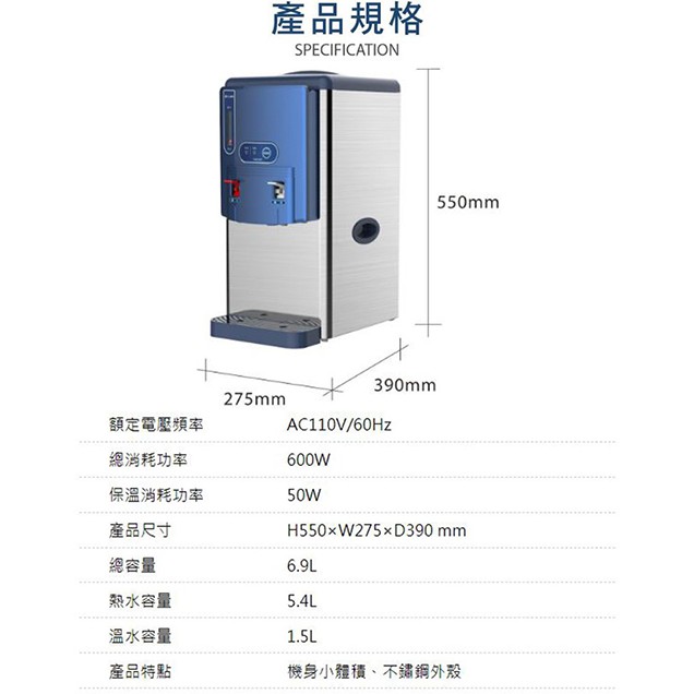 元山牌 7L全不鏽鋼溫熱開飲機 YS-8618DW 現貨 廠商直送