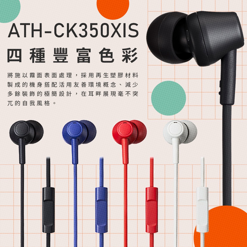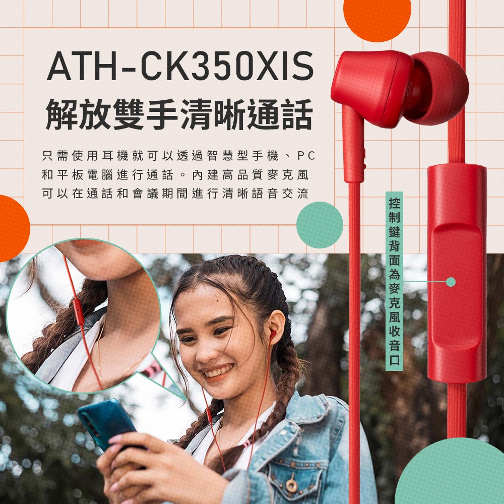 鐵三角ATH-CK350XIS 智慧型手機用耳機麥克風組 有線耳機 現貨 廠商直送