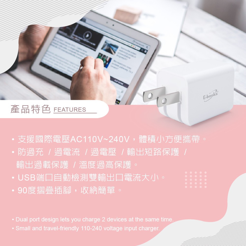 MIT充電頭 USB充電頭 摺疊2.4A雙USB快速充電器- B51 蝦皮直送 現貨
