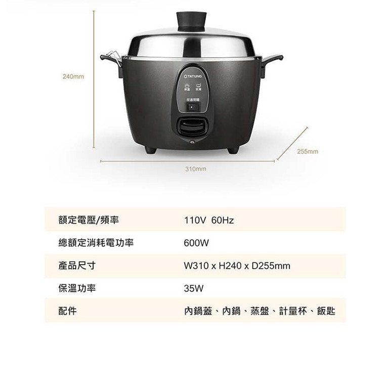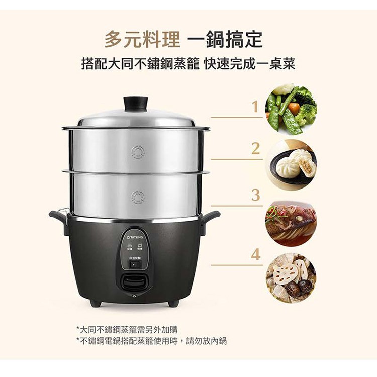 TATUNG大同 6人份多功能不鏽鋼電鍋-晶鑽灰 TAC-06I-NIG 現貨 廠商直送