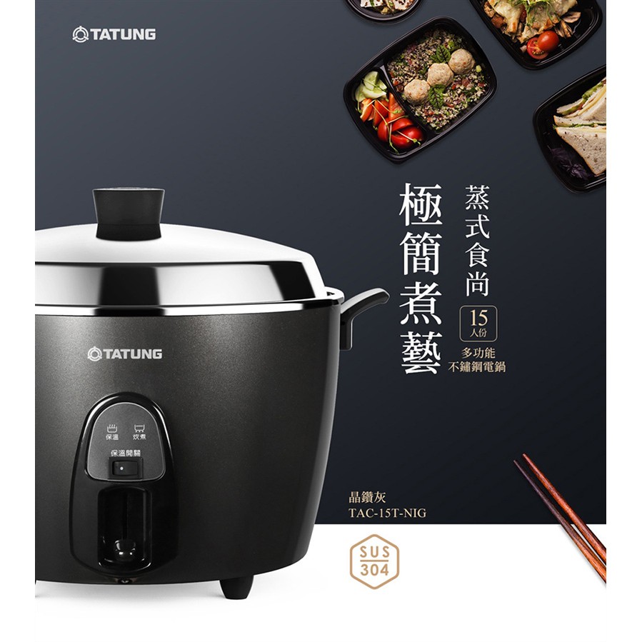 TATUNG大同 15人份多功能不鏽鋼電鍋-晶鑽灰 TAC-15T-NIG 現貨 廠商直送