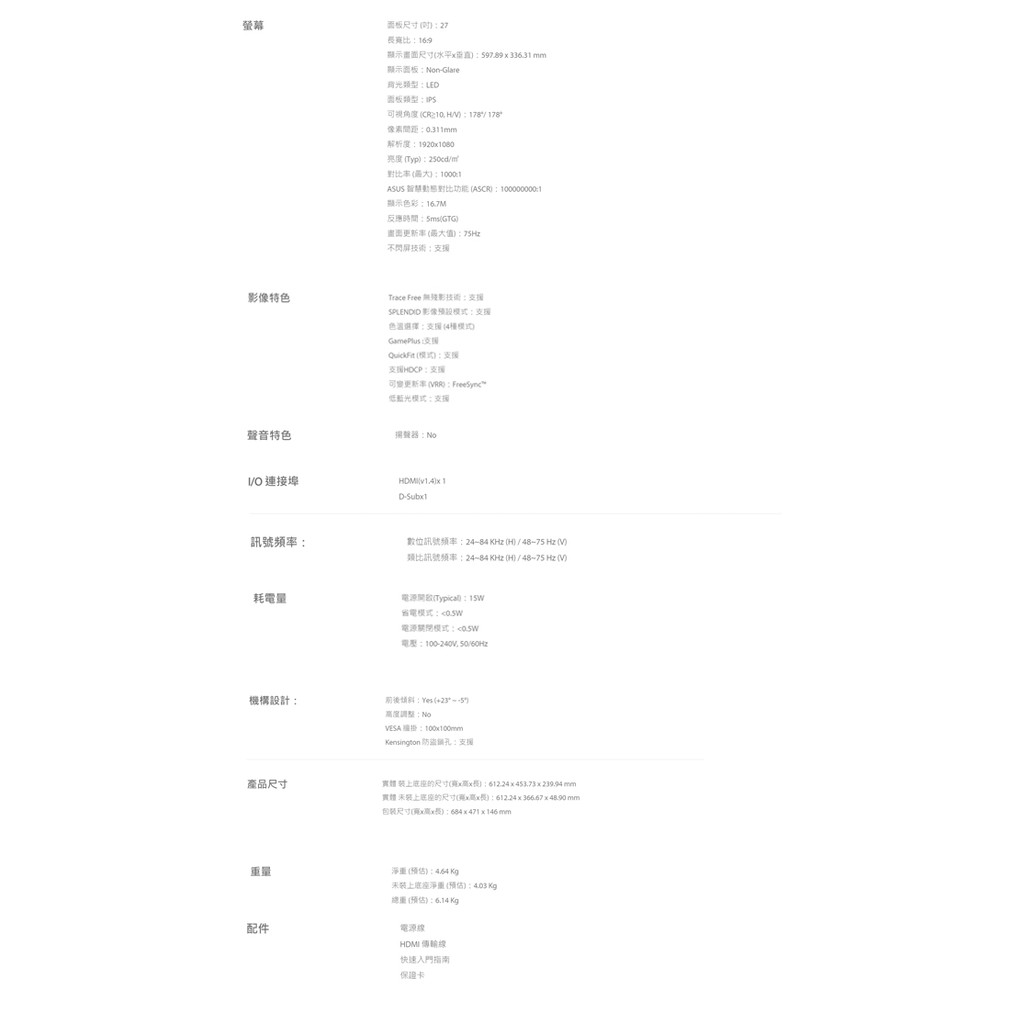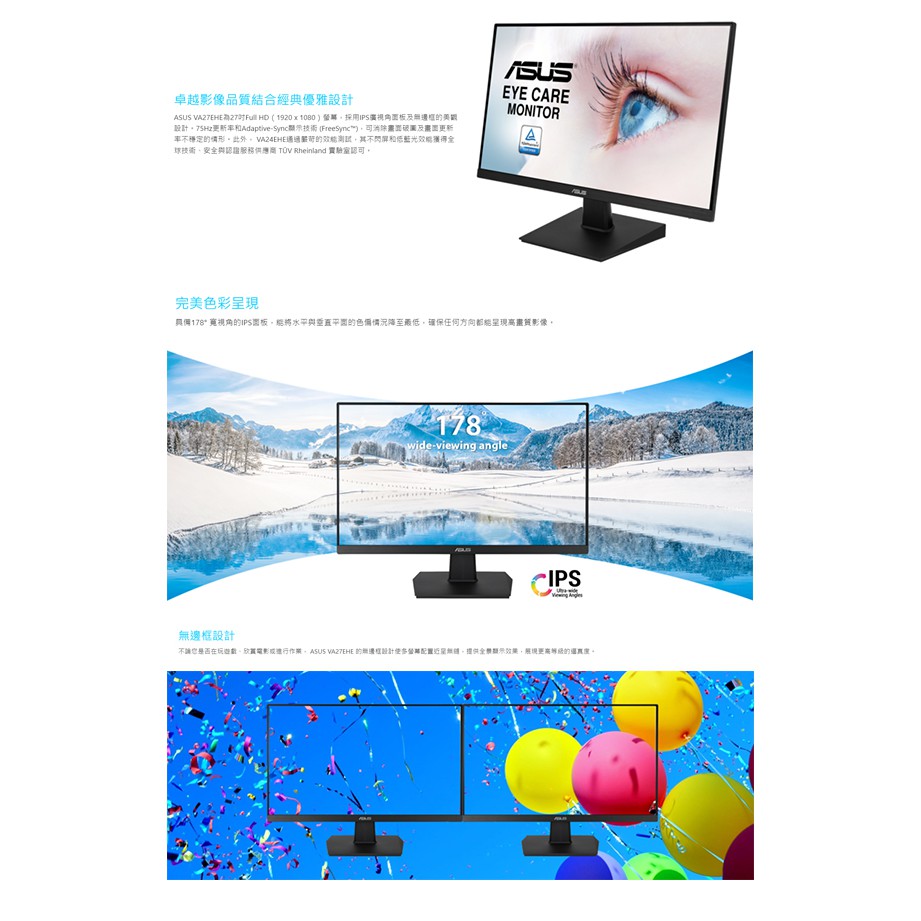 ASUS 華碩 VA27EHE 27型IPS低藍光不閃屏液晶螢幕 現貨 廠商直送