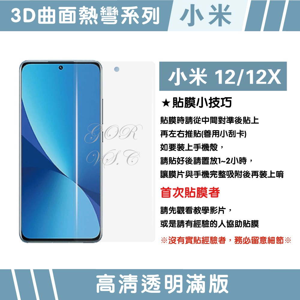 GOR保護貼 小米12 / 12X 全透明滿版兩片裝 正膜 PET軟膜保護貼 廠商直送