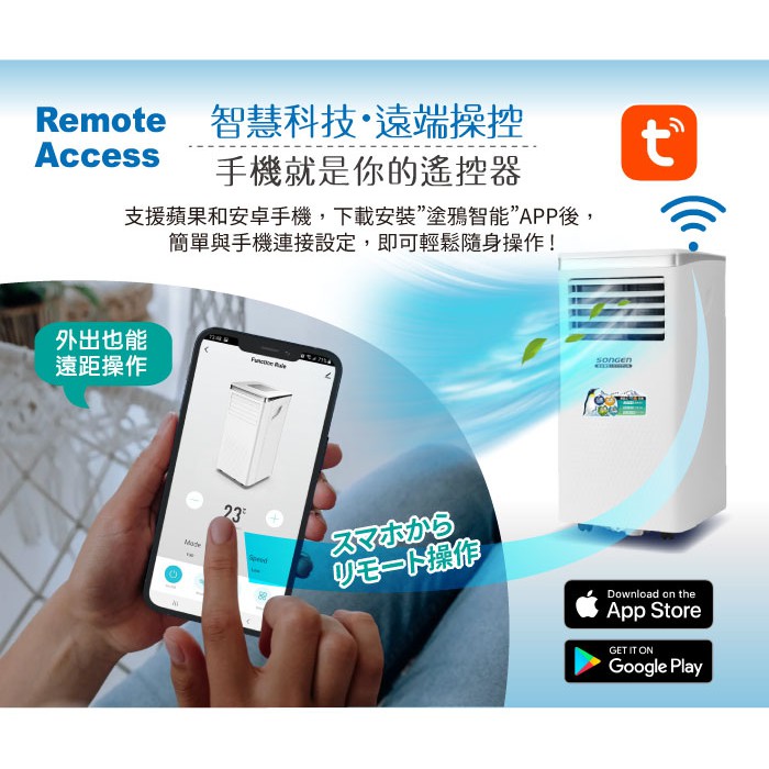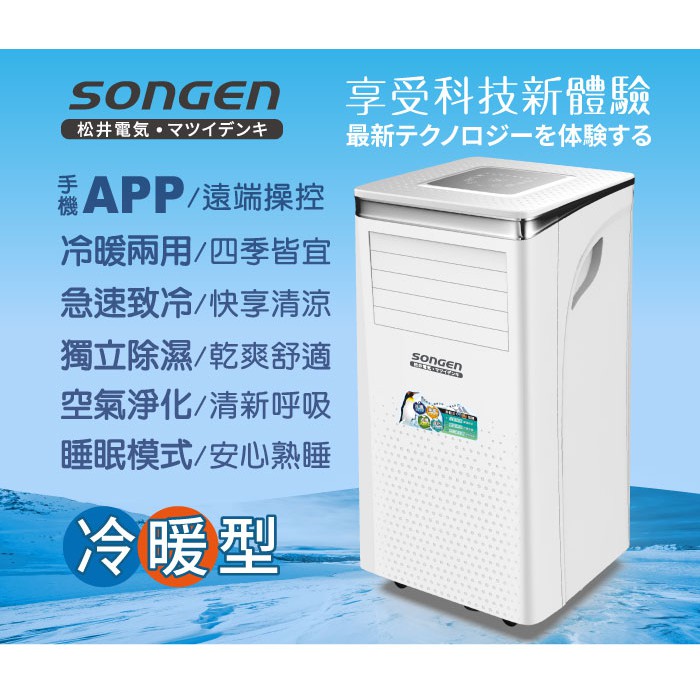 日本SONGEN 松井11000BTU 手機APP智控冷暖型移動式冷氣機/空調(SG-A413CH) 現貨 廠商直送