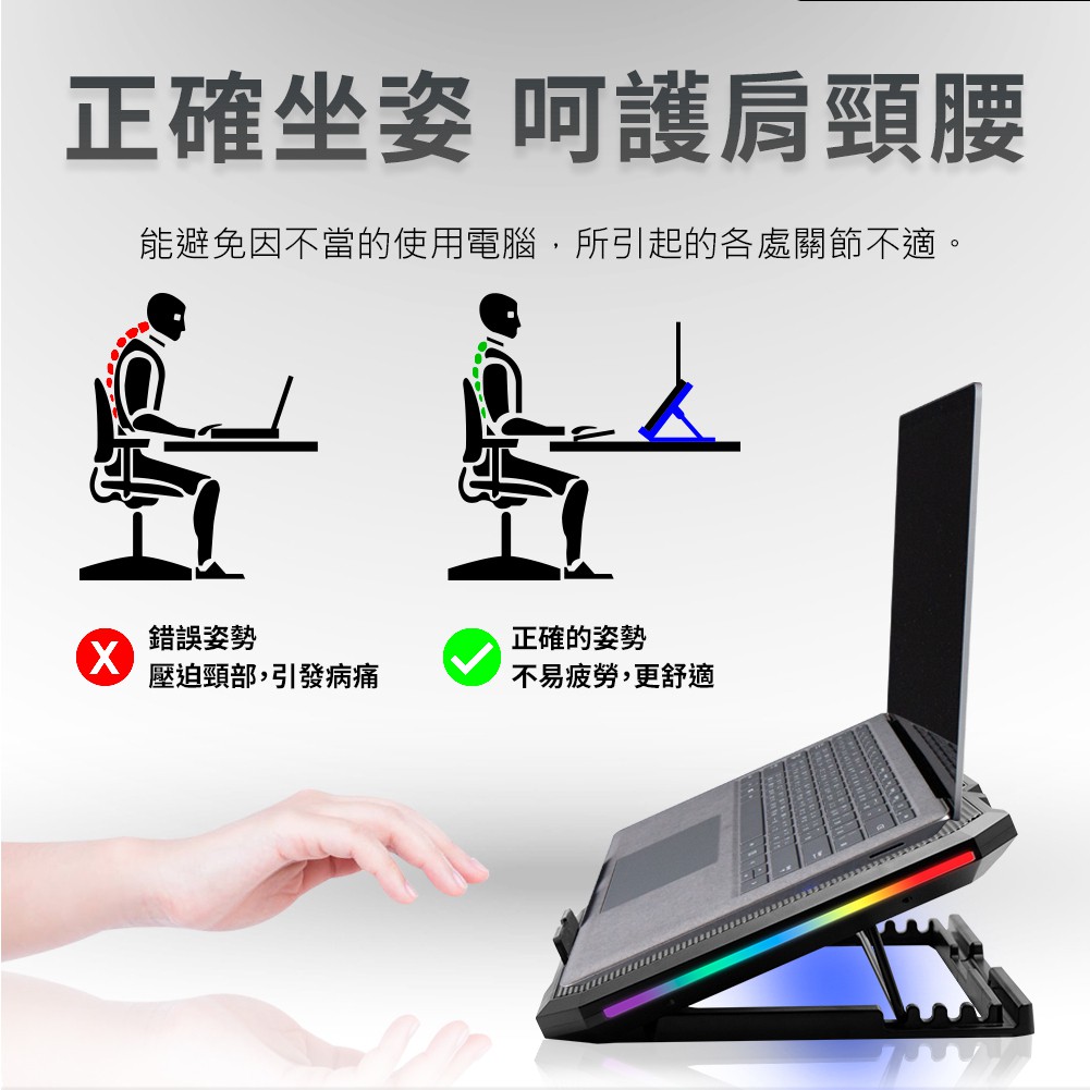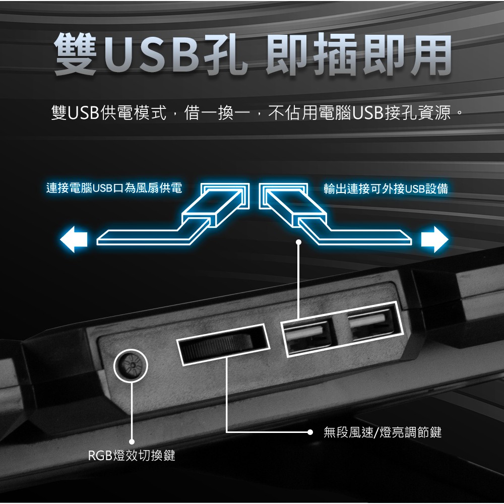 PC Park H9 RGB筆記型散熱座 散熱墊 雙風扇 筆電散熱支架 雙USB現貨 廠商直送