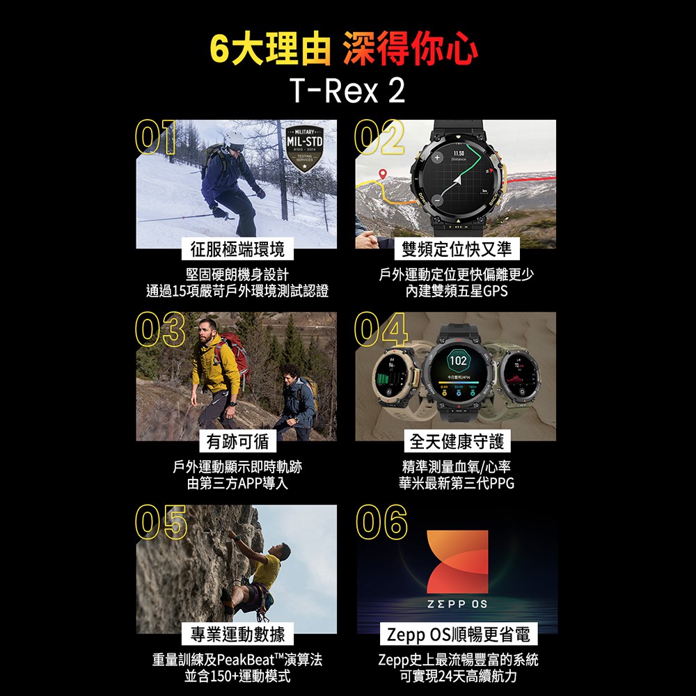 Amazfit華米T-Rex2軍規認證GPS極地運動健康智慧手錶(原廠公司貨/心率血氧/米動智能穿戴) 現貨 蝦皮直送