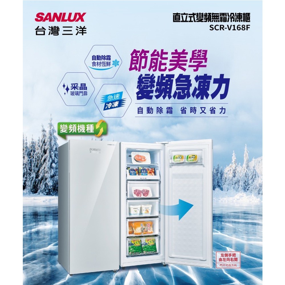 SANLUX 台灣三洋 165L 直立式 變頻冷凍櫃 SCR-V168F 送基本安裝 大型配送