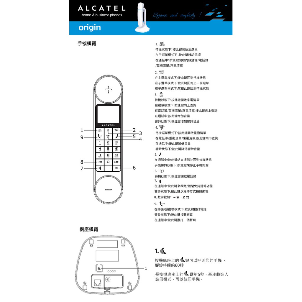 ALCATEL 阿爾卡特 ORIGIN 無線電話機 來電顯示免持電話家用無線電話 室內無線電話家用電話 現貨 蝦皮直送