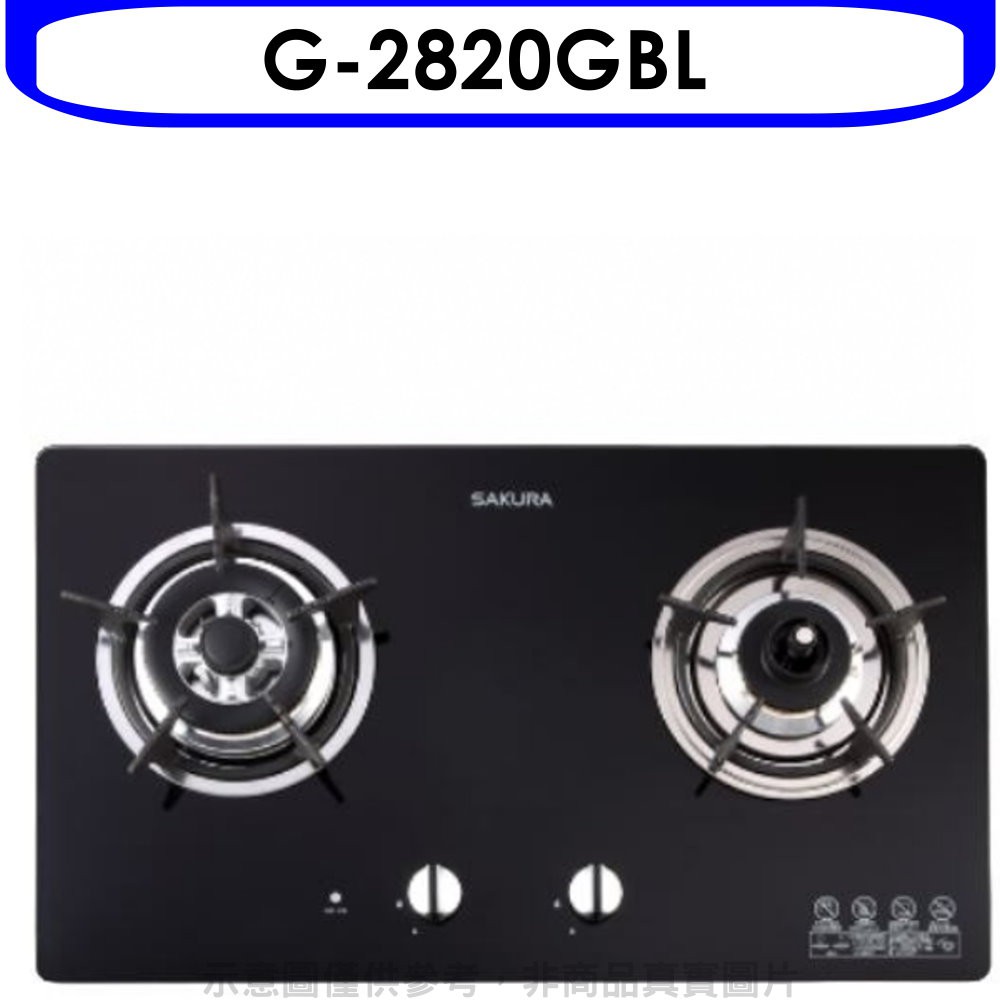 櫻花 雙口檯面爐黑色(與G-2820GB同款)左乾燒瓦斯爐桶裝瓦斯G-2820GBL 大型配送