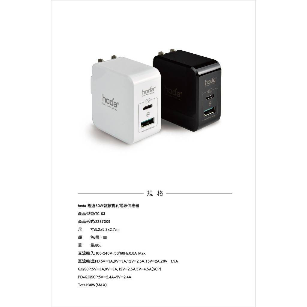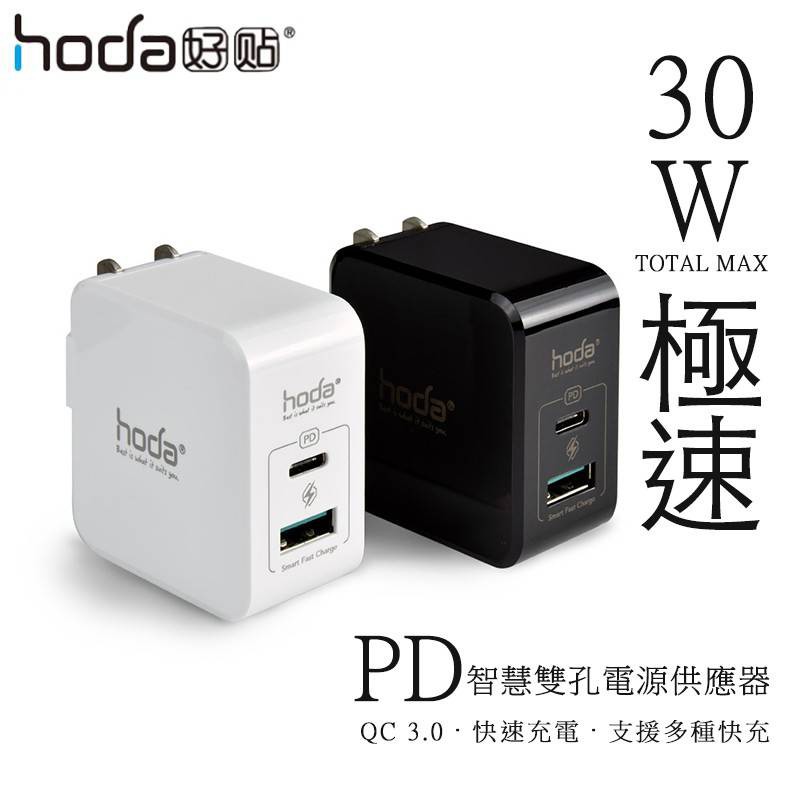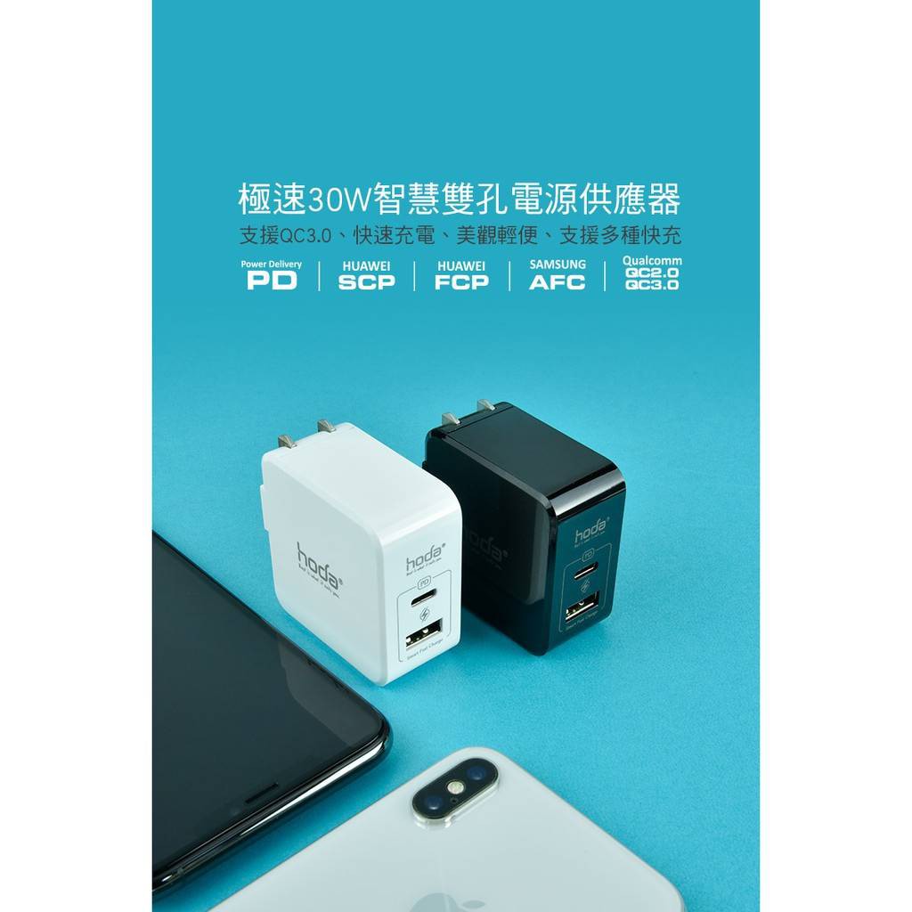 HODA 30W PD雙孔USB充電器 極速智慧充電器 PD豆腐頭快充頭 可支援iPhone13 11 12 蝦皮直送