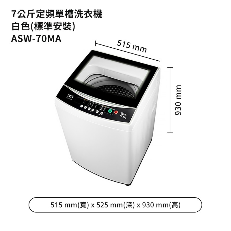 SANLUX台灣三洋【ASW-70MA】7公斤定頻單槽洗衣機-白色(標準安裝) 大型配送