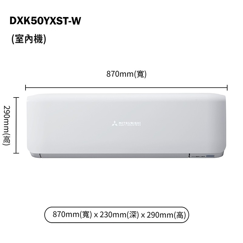三菱重工DXC50YXST-W/DXK50YXST-W R32變頻一對一分離式冷氣-冷專型(含標準安裝) 大型配送