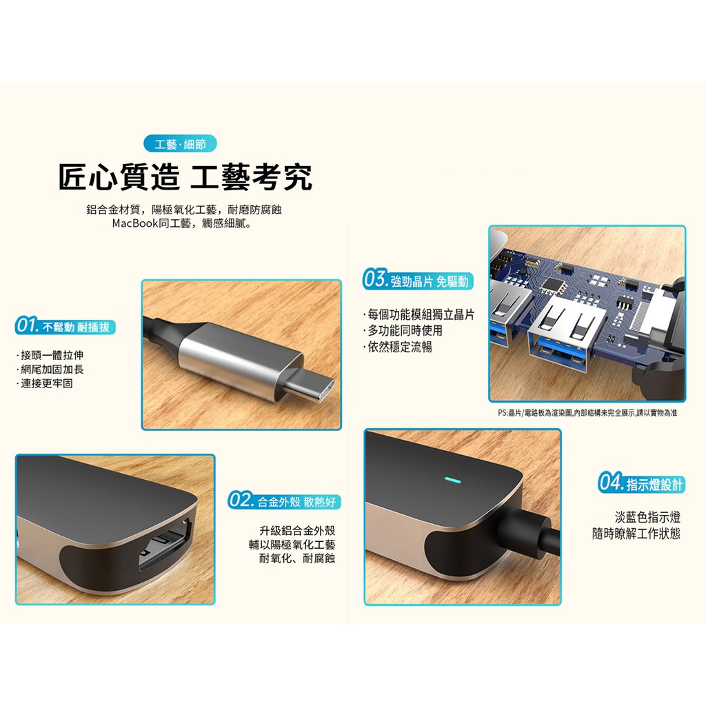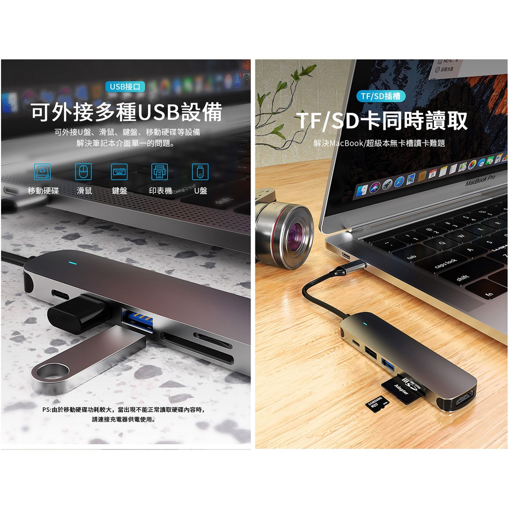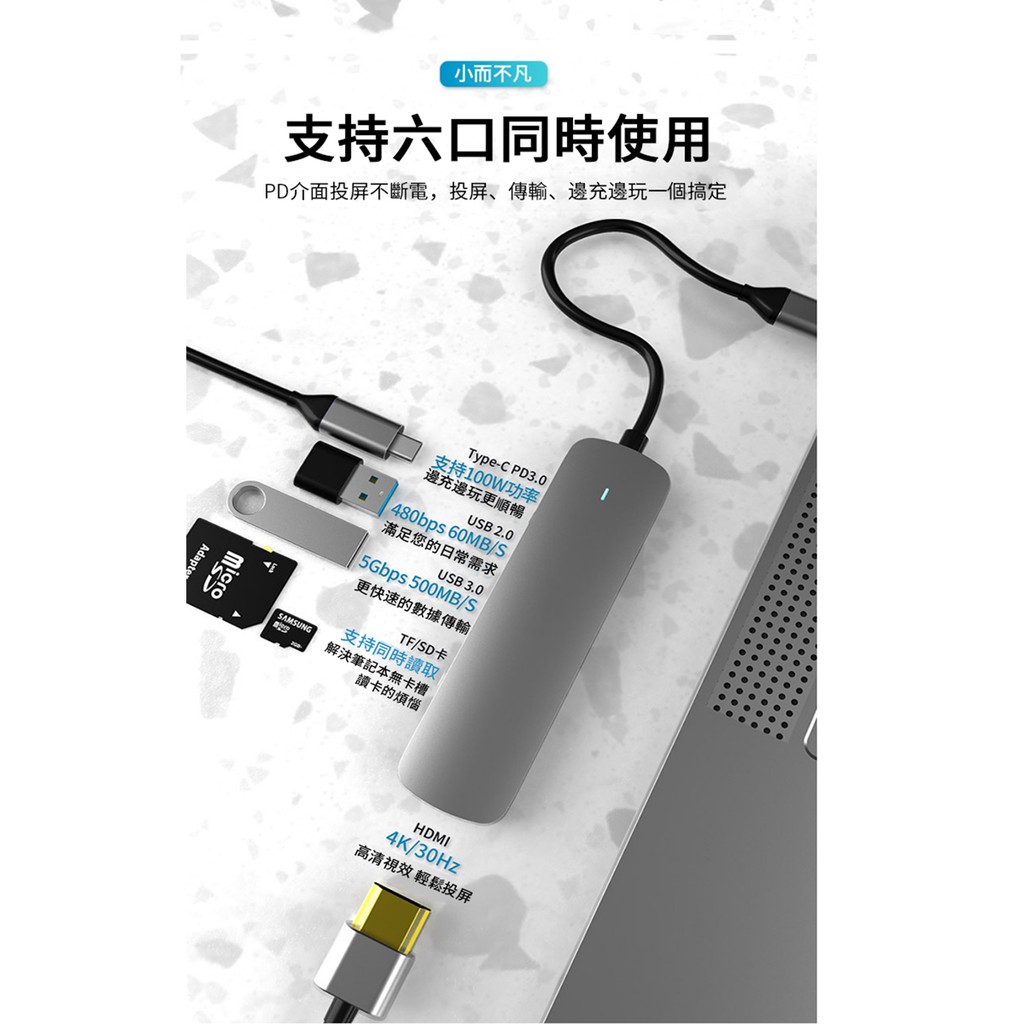ANTIAN Type-C 六合一多功能HUB轉接器HDMI PD快充USB3.0集線器Mac轉接頭 現貨 蝦皮直送