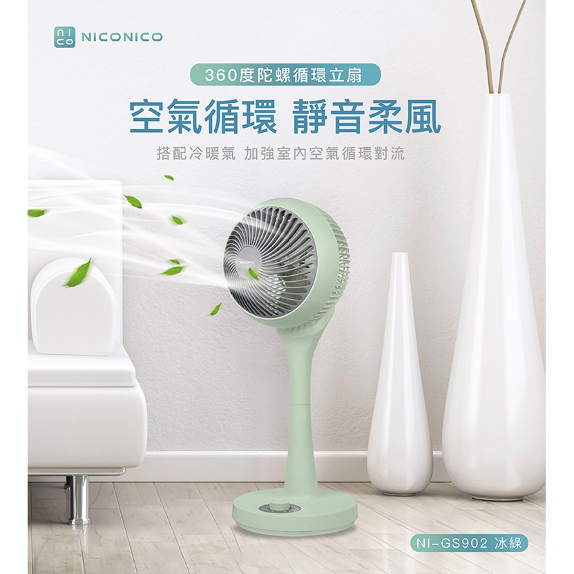 NICONICO 一代熱銷款 小白循環扇 360度循環陀螺立扇 NI-GS902 廠商直送