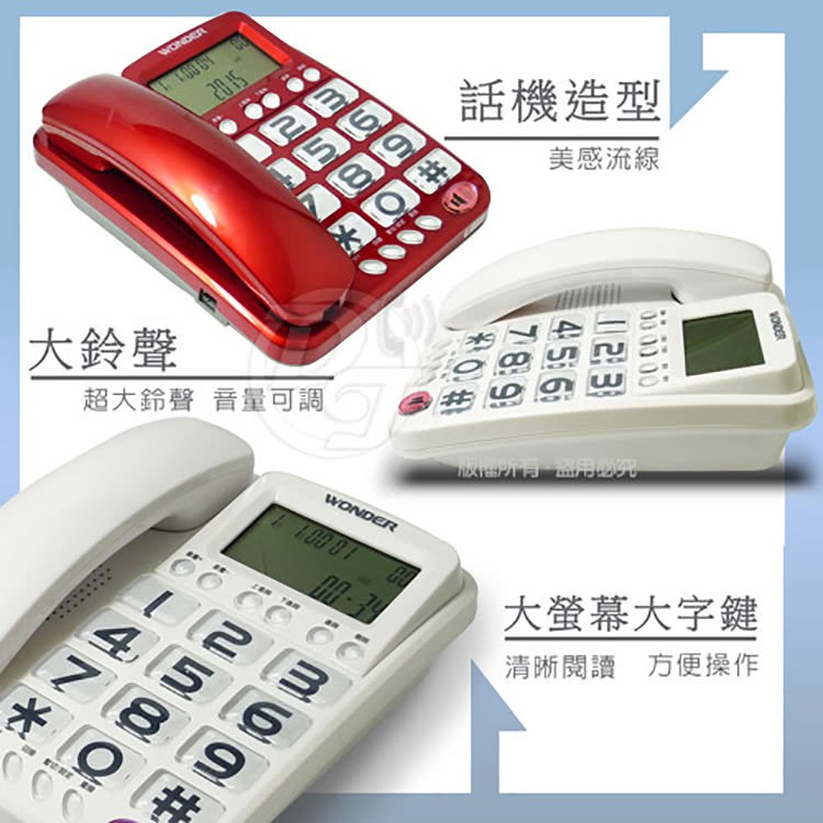 WONDER 旺德 大鈴聲大聲音電話機(WT-06) 現貨 廠商直送
