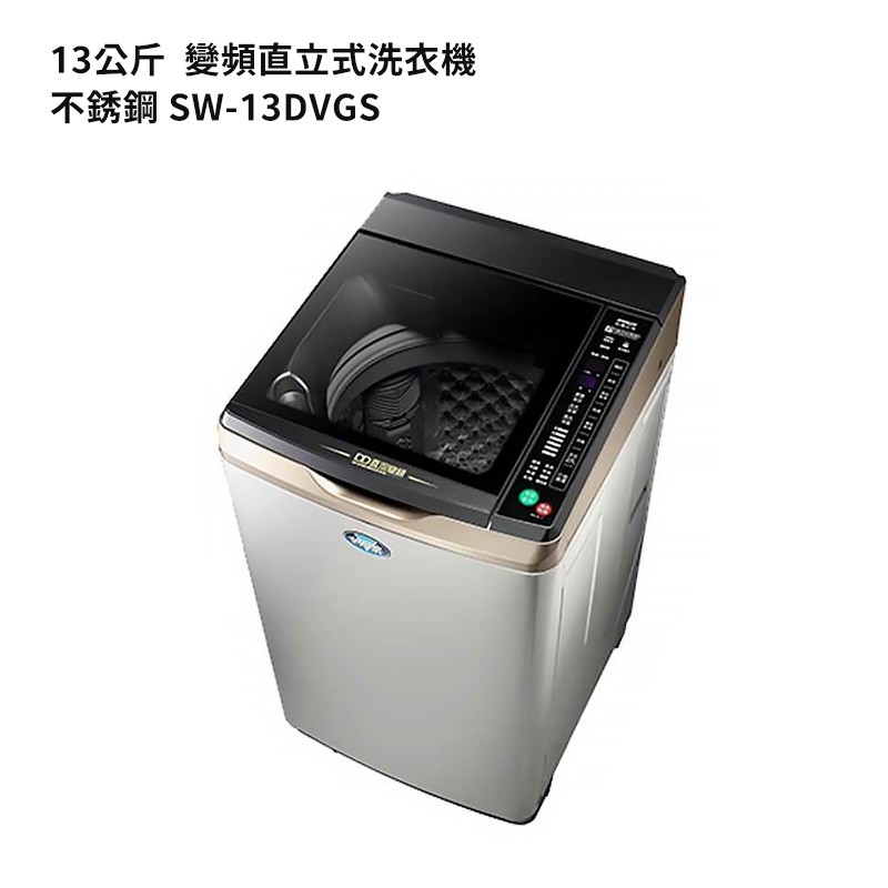 SANLUX台灣三洋【SW-13DVGS】13公斤DD直流變頻超音波單槽洗衣機-不銹鋼(標準安裝) 大型配送