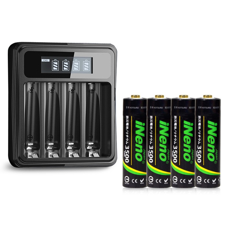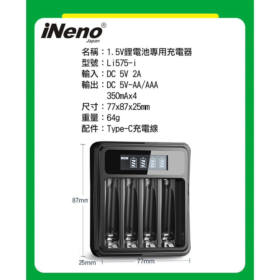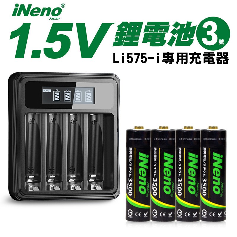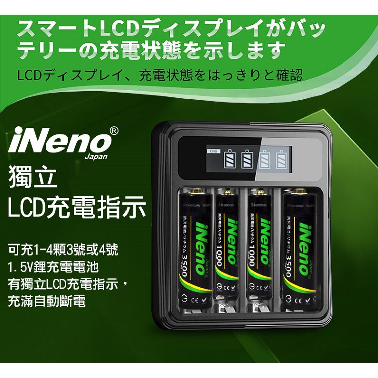 日本iNeno 3號/AA可充式1.5V鋰電池+專用液晶充電器 隨時充 重複使用 環保 現貨 廠商直送