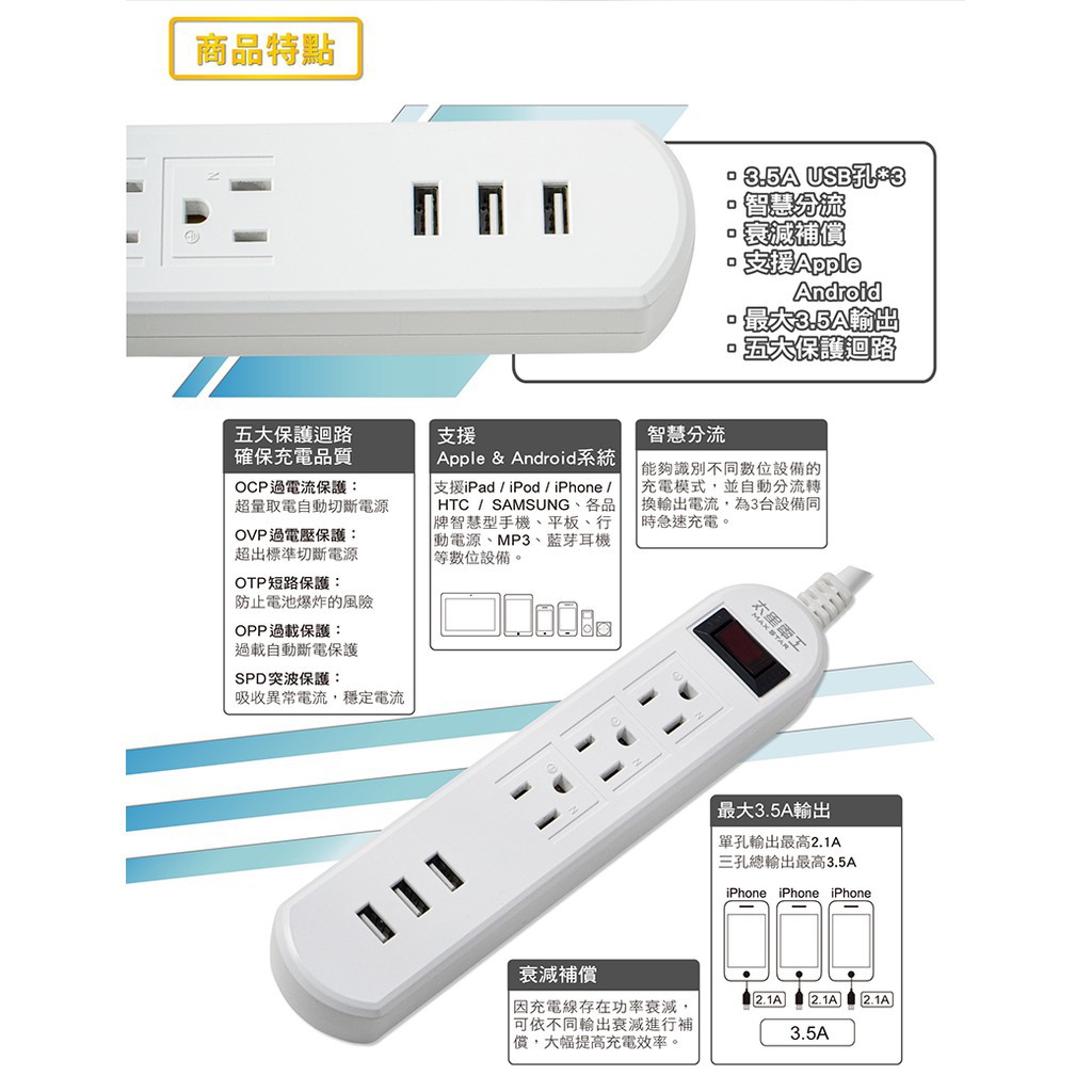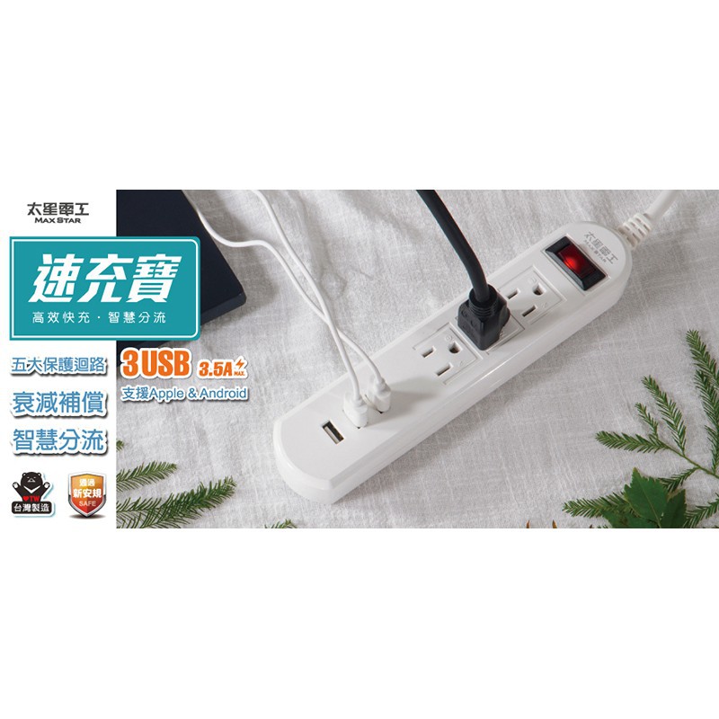 太星電工 速充寶3.5A 3USB一開三插電腦線/3P(4尺)OCP31304_ 現貨 廠商直送