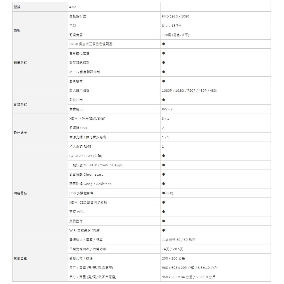 JVC 43吋FHD Android TV連網液晶顯示器43(M) 大型配送
