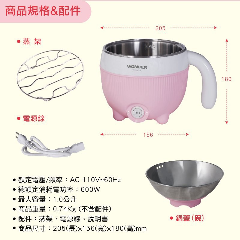 WONDER 旺德雙層防燙不鏽鋼碗蓋美食鍋 WH-K35福利品九成新 現貨 廠商直送