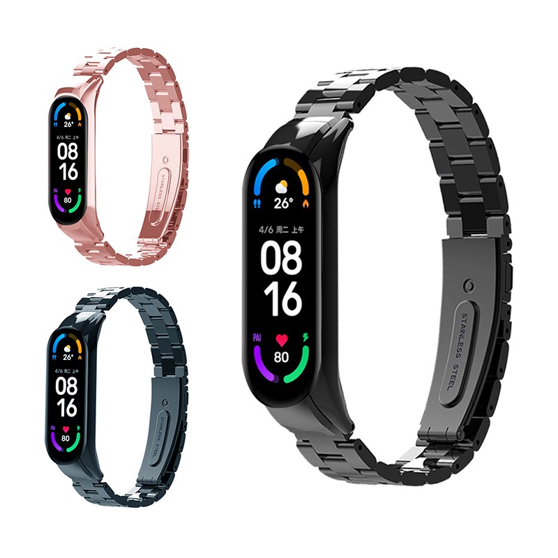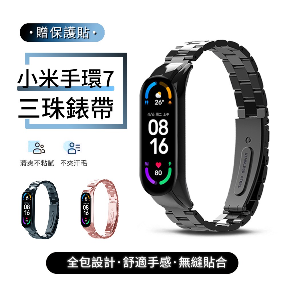 ANTIAN 小米手環7 金屬三珠替換錶帶 高端商務 不鏽鋼手腕帶 時尚透氣腕帶 手錶帶 贈保護貼 現貨 蝦皮直送