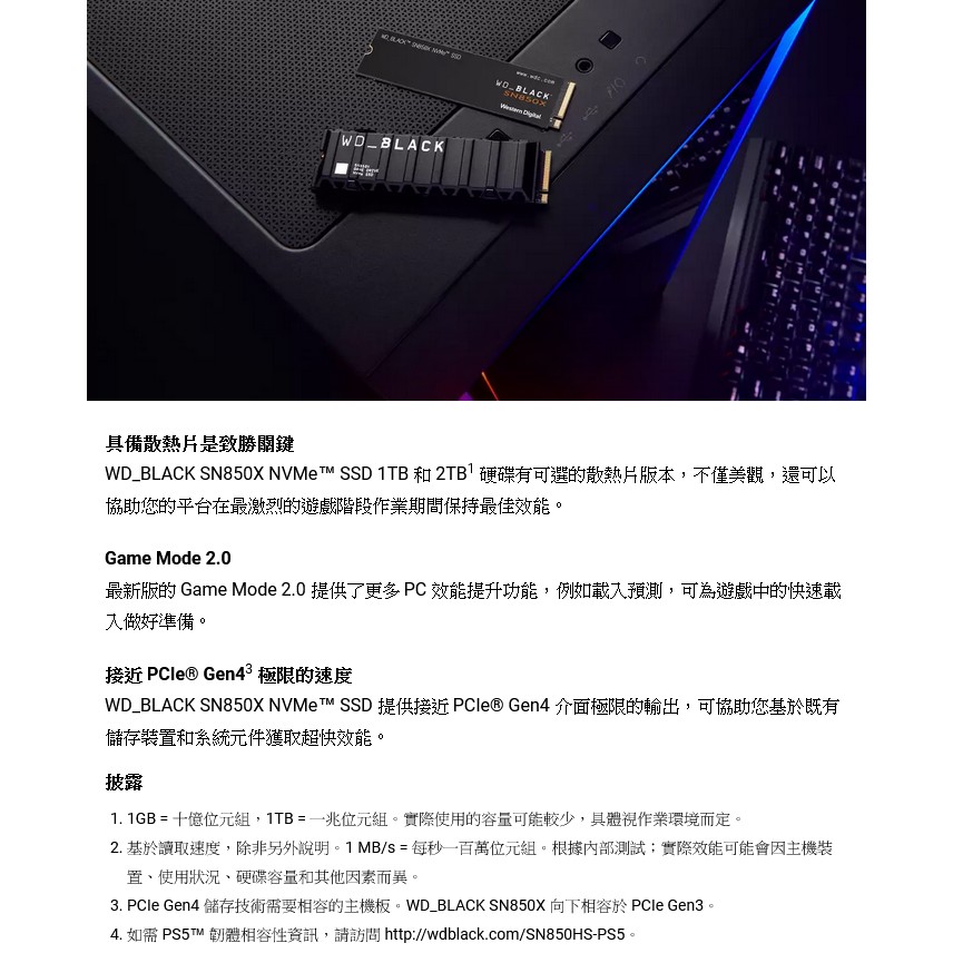 WD 黑標 SN850X 無散熱片 2TB SSD M.2 PCIe NVMe 4 x4 固態硬碟 現貨 廠商直送