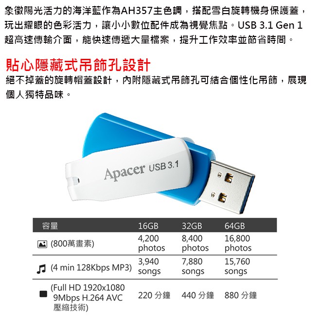 Apacer 宇瞻 32GB AH357 USB3.1 旋轉碟 隨身碟 現貨 蝦皮直送