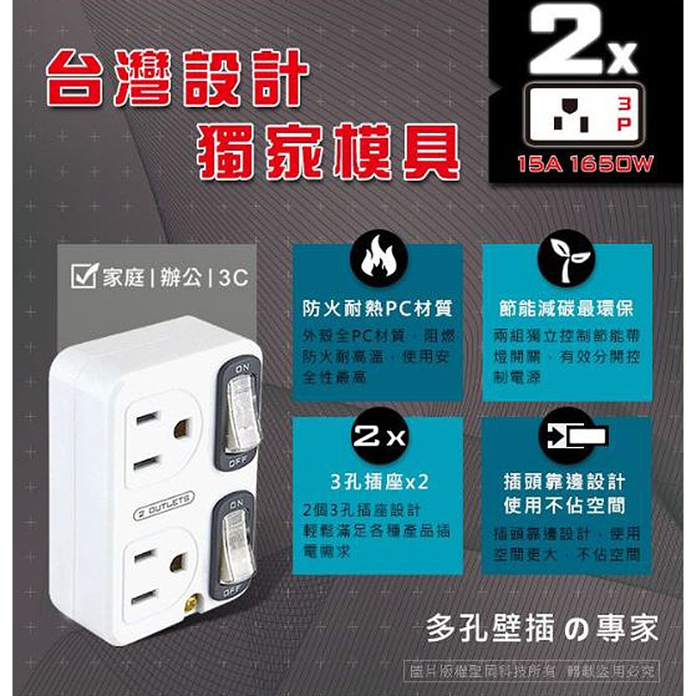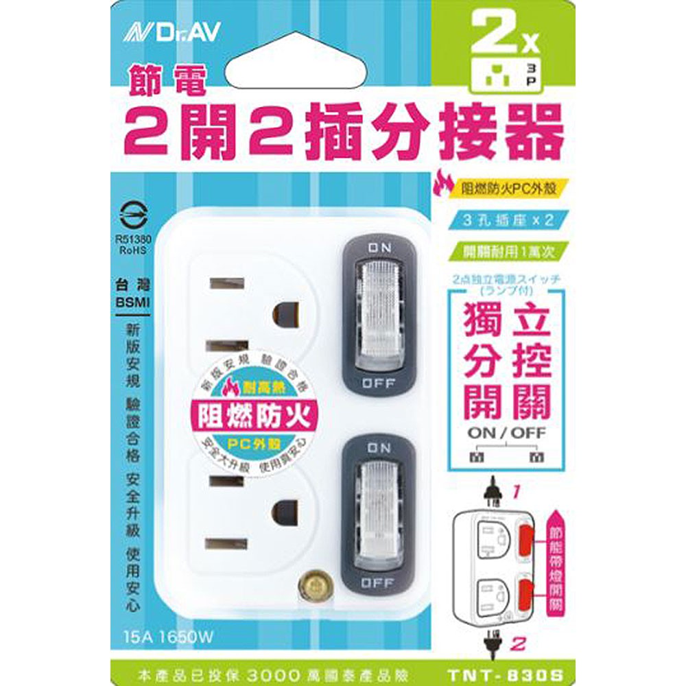聖岡科技Dr.AV TNT-830S分接器3孔2開2插(壁插 3轉2 獨立帶燈開關 插角靠邊設計 防火) 現貨 廠商直送