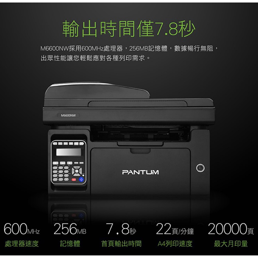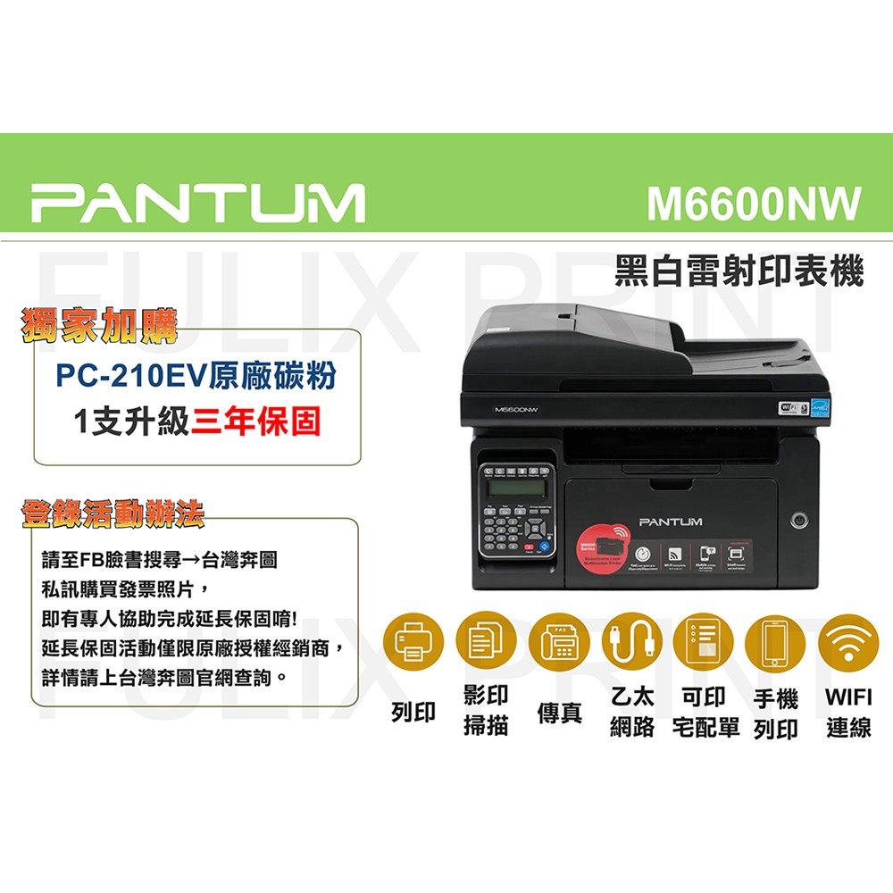PANTUM 奔圖 M6600NW 黑白雷射 含傳真印表機 影印 掃描 傳真 WIFI 現貨 廠商直送