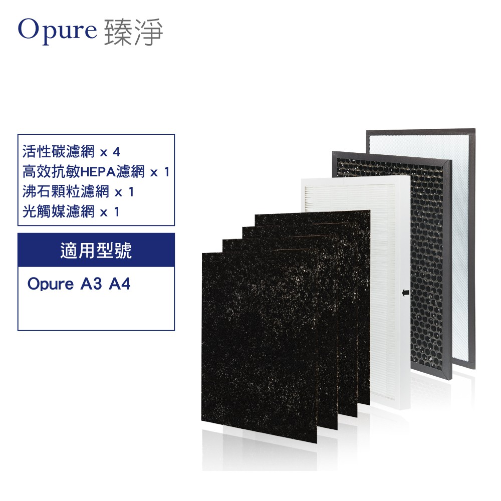 Opure 臻淨原廠濾網 A3 A4 四層濾網組一年份 高效抗敏HEPA光觸媒DC節能空氣清淨機 現貨 廠商直送