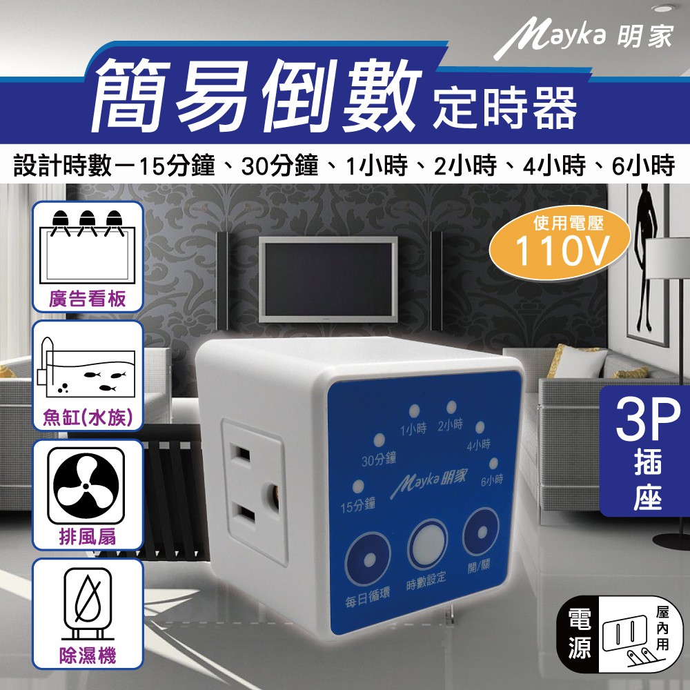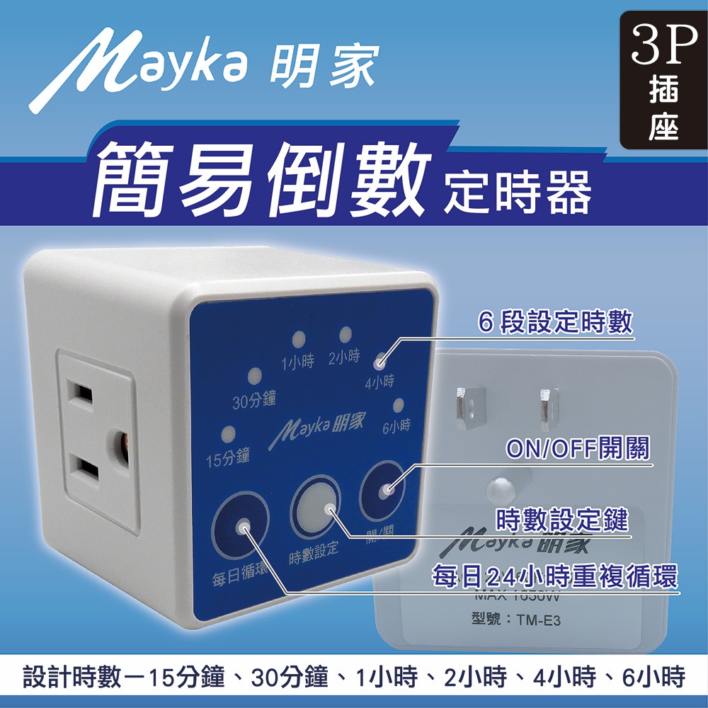 明家Mayka TM-E3簡易倒數3孔插 定時器(6段時數倒數110V每日循環 便利省電) 現貨 廠商直送