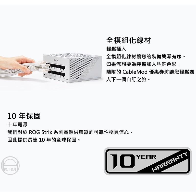 ASUS華碩ROG STRIX 850G 850W金牌電源供應器全模組PSU電源供應器10年保 現貨 廠商直送