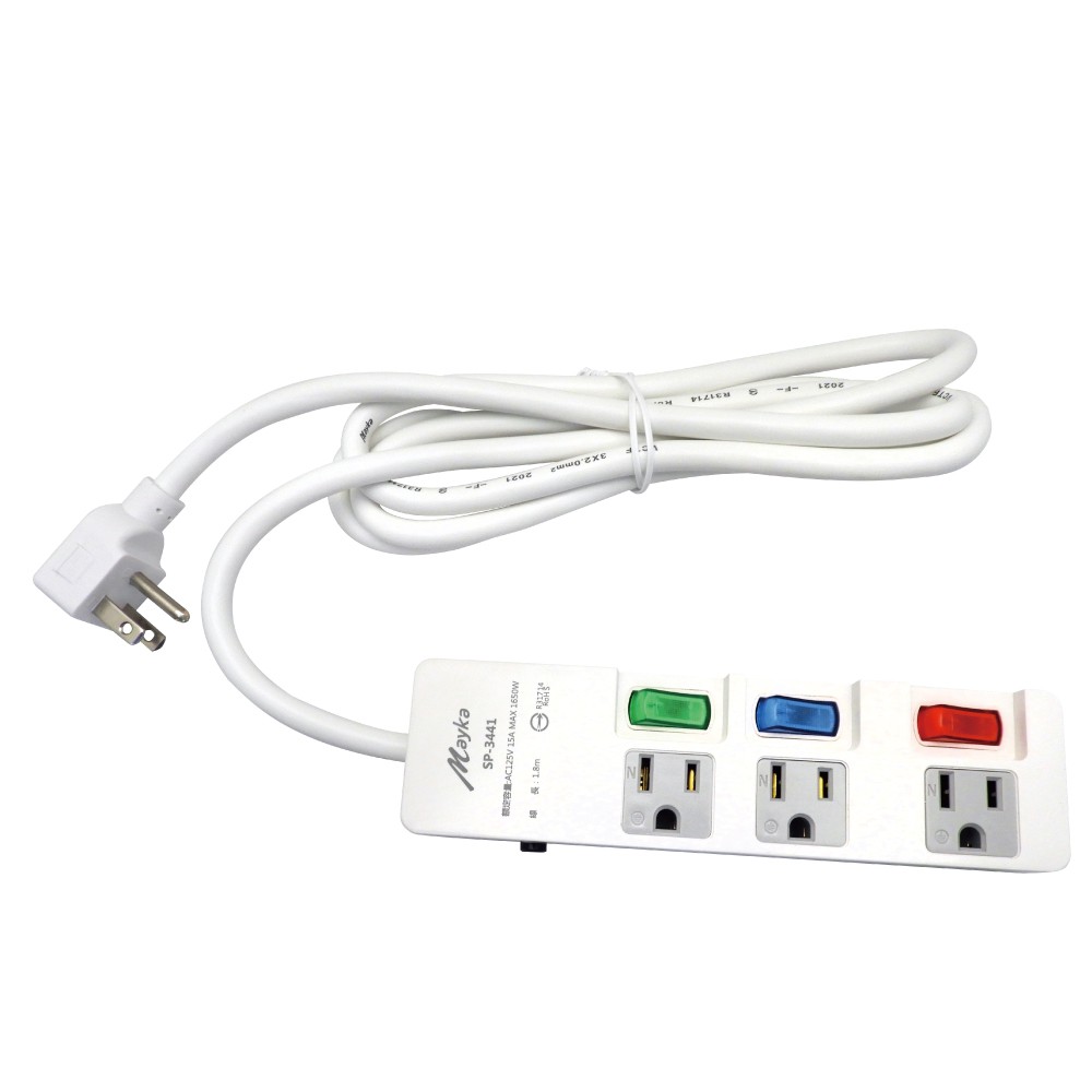 明家Mayka SP-3441 3孔3開3插防雷 延長線(平貼插頭 電腦線 獨立開關 凹槽 過載斷電 現貨 廠商直送