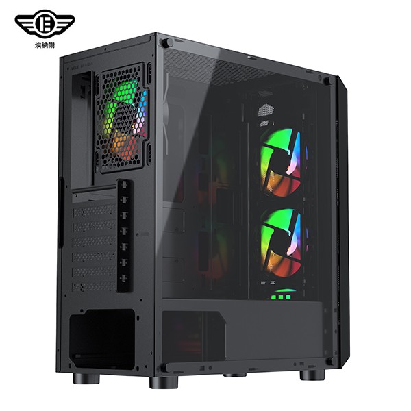 EINAREX埃納爾G-200B/G-200W玻璃側板幻彩風扇X4 USB3.0黑/白電腦機殼 現貨 廠商直送