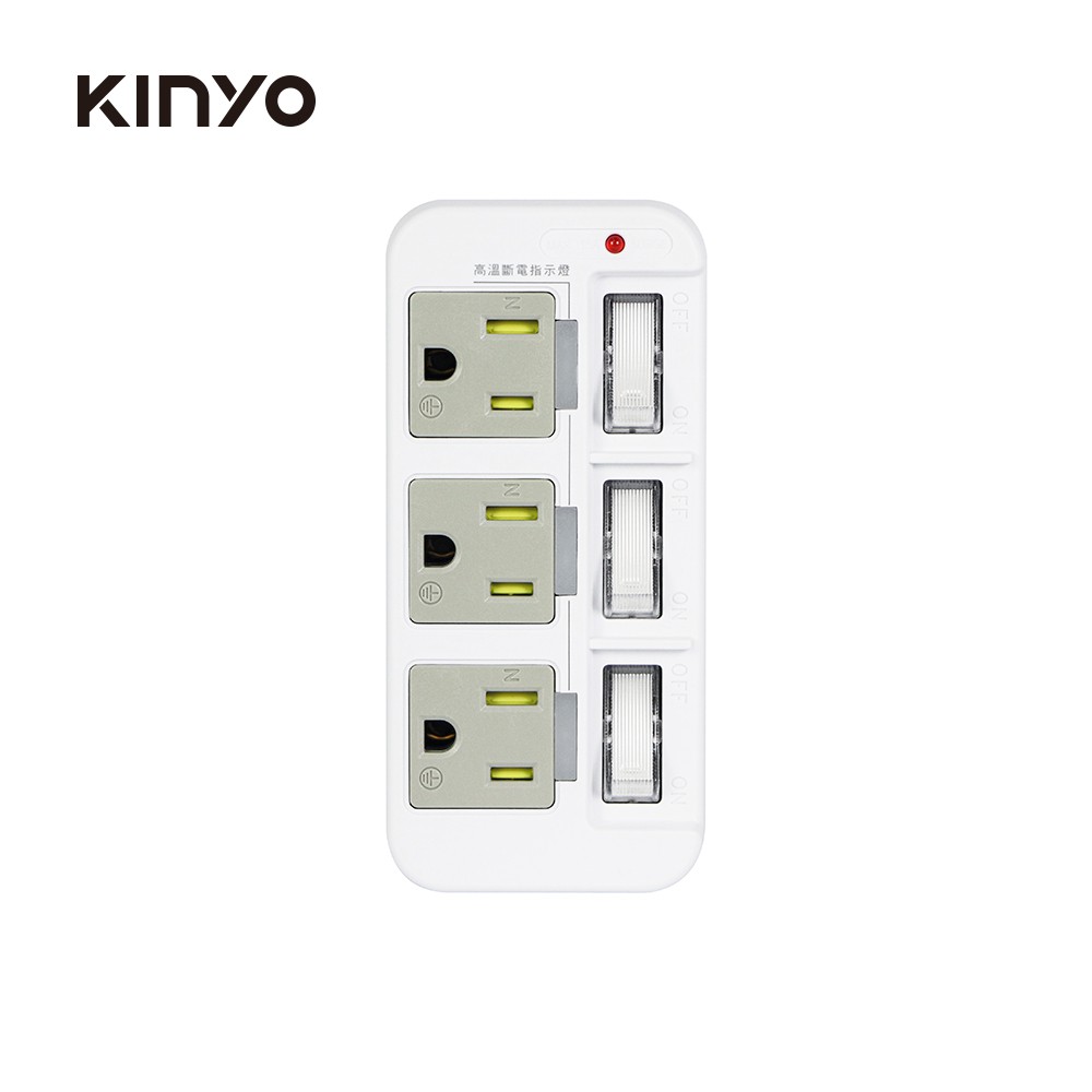 KINYO 3P高溫斷電3開3插分接器 (GI-333) 防雷擊 獨立開關 高溫斷電 耐熱 現貨 廠商直送