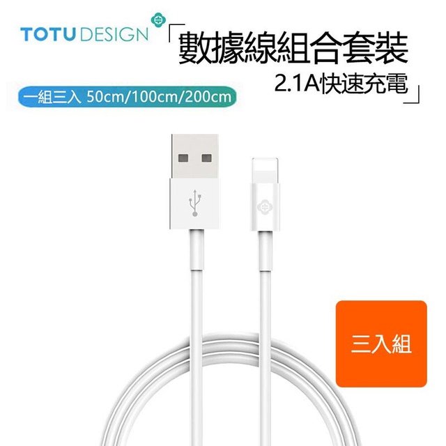 TOTU 適用 IPhone 蘋果 Lightning 充電線 2.1A 快充 充電線套裝 耀系列 三入組 蝦皮直送