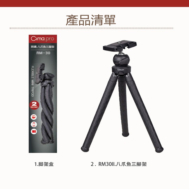 CimaPro 通用款八爪?三腳架RM-30 送Gopro轉接頭&手機夾 現貨 蝦皮直送