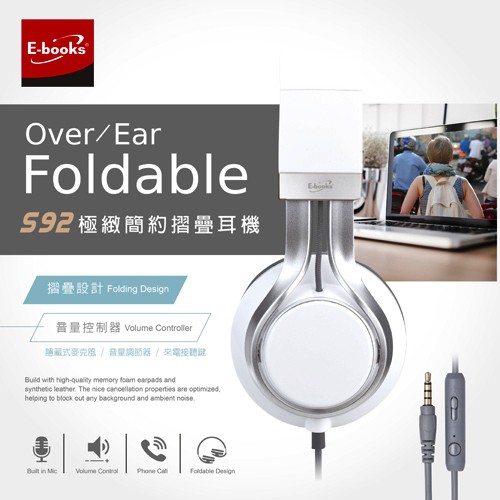E-books S92 耳罩耳機 電腦耳機 免持通話 頭戴式 原音 摺疊耳機 耳麥 耳罩式 現貨 蝦皮直送