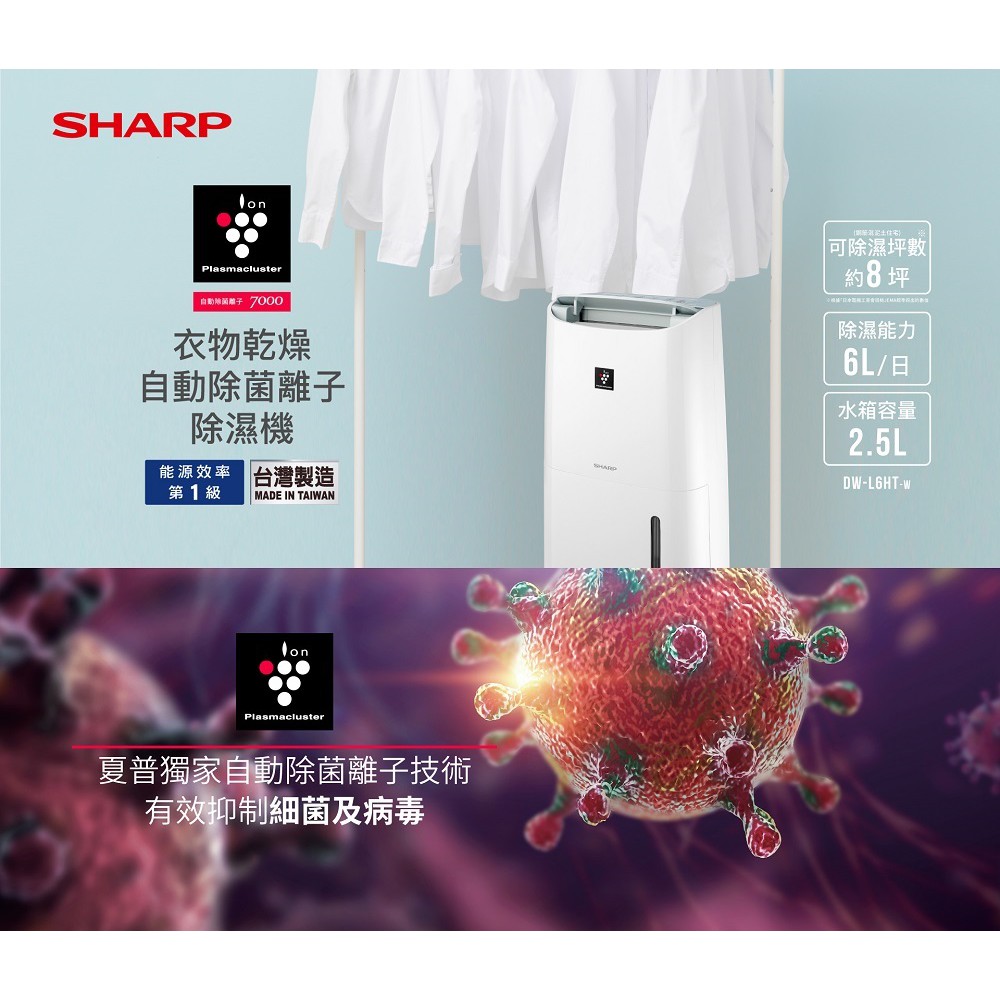 SHARP夏普6L自動除菌離子清淨除濕機DW-L6HT-W 現貨 廠商直送
