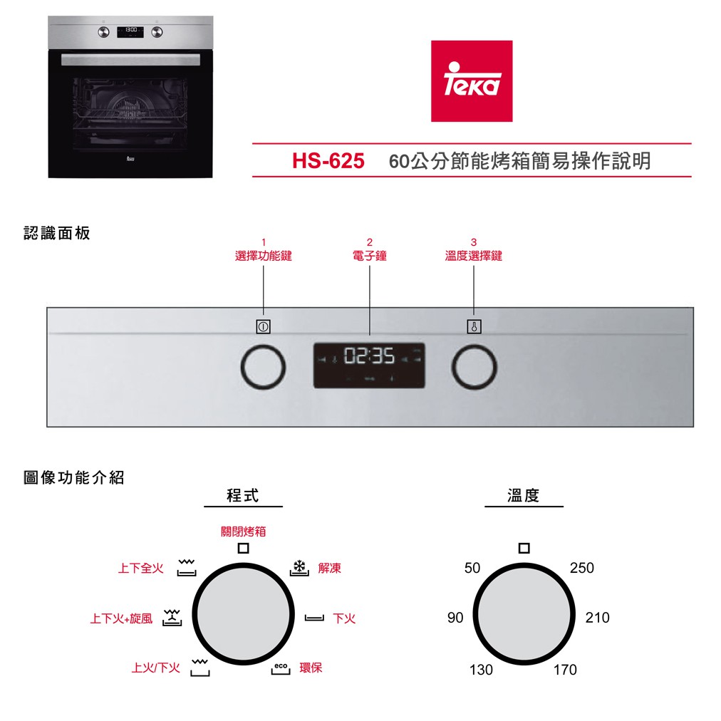 德國TEKA-60公分崁入式不鏽鋼旋風烤箱 HS-625 220V 僅配送無安裝 客林渥 現貨 廠商直送