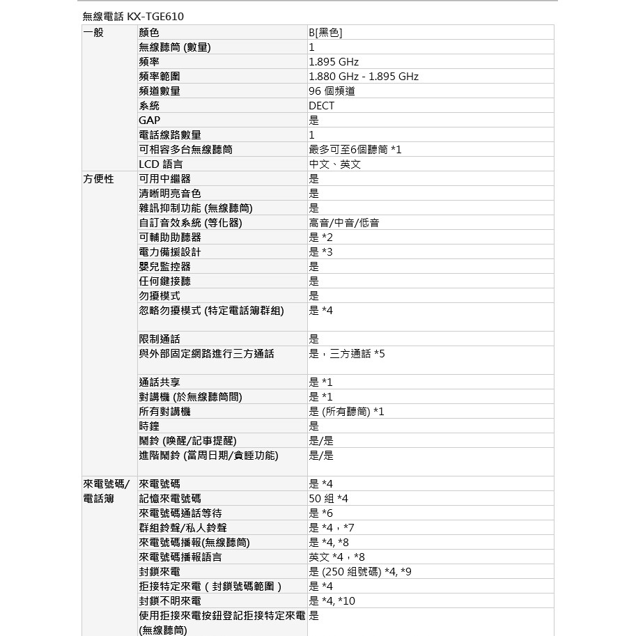 Panasonic國際 DECT中文數位無線電話 KX-TGE610TWB 公司貨 保固兩年 現貨 廠商直送