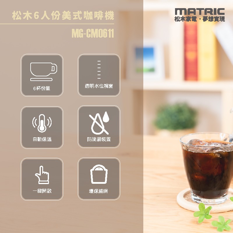 MATRIC 松木 6人份美式咖啡機 MG-CM0611 (奶茶色) 現貨 廠商直送