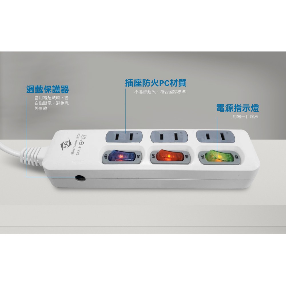 威電 CK-2331 2孔3開3座 延長線(180度任轉插頭 過載斷電) 現貨 廠商直送