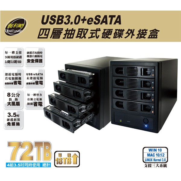 伽利略35D-U3ES 3.5吋4槽硬碟外接盒DigiFusion USB3SATAeSATA 現貨 廠商直送