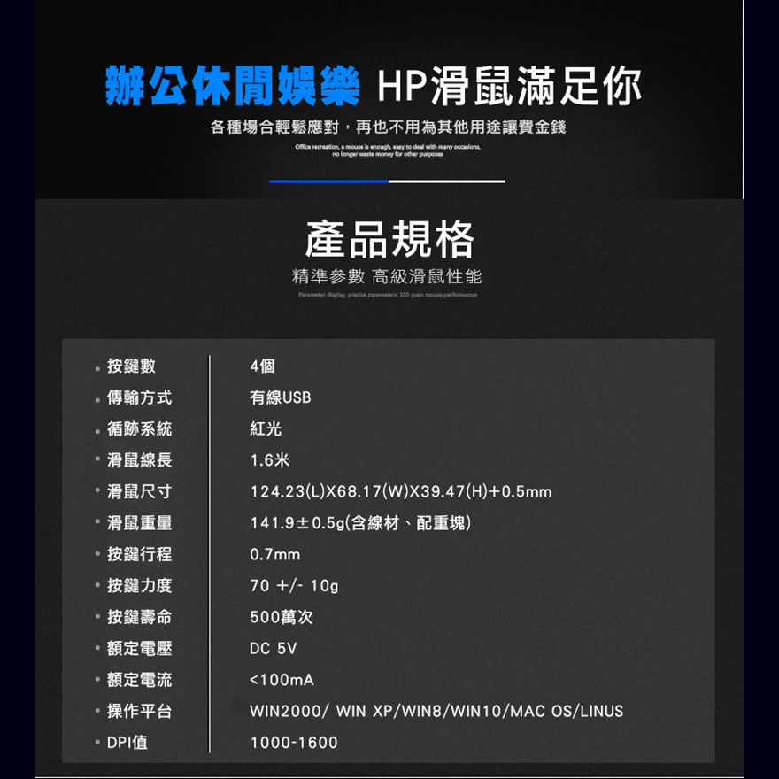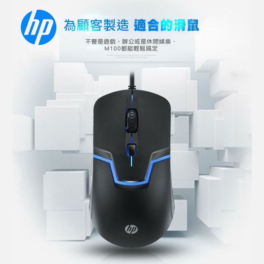 HP有線滑鼠 m100 有線 電腦滑鼠 USB滑鼠 人體工學設計 辦公 電腦周邊 現貨 蝦皮直送