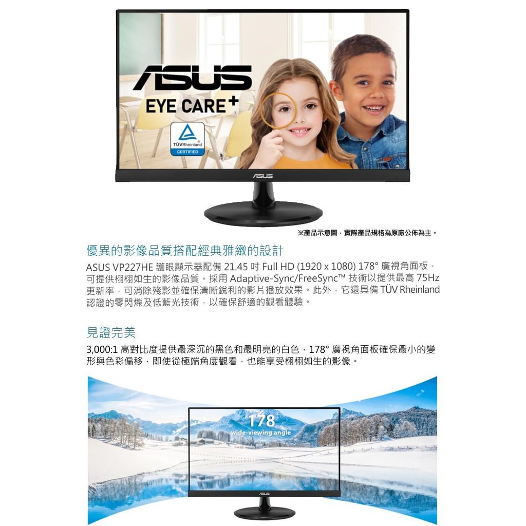 ASUS 華碩 22型 VP227HE 螢幕 低藍光不閃屏 5ms/VA/無喇叭 現貨 廠商直送